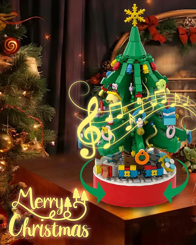 Immersive Activities for Christmas: During Christmas, the Christmas tree is an indispensable Christmas decoration for every family. By turning the handle, kids can see the Christmas Tree rotating and the train running, making the scene come alive and fun. This building block toy set allows the family to get together to enjoy beneficial holiday building blocks, follow the colorful and detailed instructions to start building the structure step by step, day by day, and spend a wonderful 24 days.